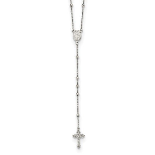 Sterling Silver Rhodium-plated Round Heart Cross Discs 32in Necklace