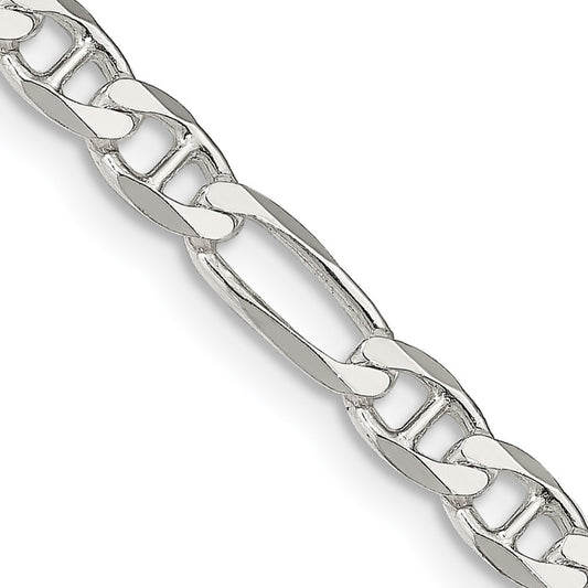 Sterling Silver 4.5mm Lightweight Flat Figaro Chain Necklace