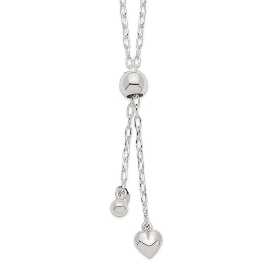 Sterling Silver 2mm Long Cable Link Heart Adjustable Necklace