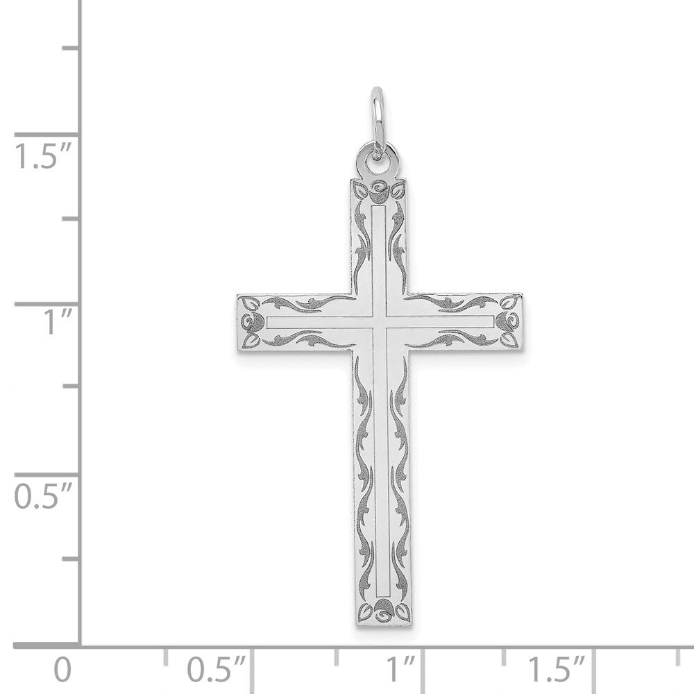 Material: Primary - Purity:14K|Finish:Polished & Laser Design|Length of Item:40 mm|Plating:Rhodium|Charm/Element Length:40 mm|Charm/Element Width:22 mm|Material: Primary:Gold|Item Weight U/M:gm|Width of Item:22 mm|Product Type:Jewelry|Jewelry Type:Pendants & Charms|Sold By Unit:Each|Pendant/Charm Type:Themed|Profile Type:Flat Back|Material: Primary - Color:White