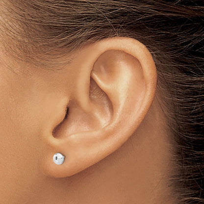 14K White Gold Polished and Diamond-cut 4.5mm Button Stud Earrings