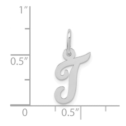 14k White Gold Small Script Letter T Initial Charm Pendant for Women