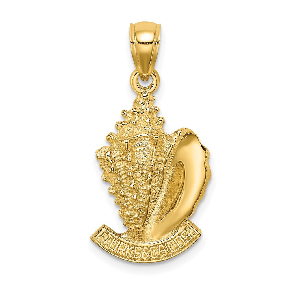 14k Yellow Gold 2-D TURKS AND CAICOS Under Conch Shell Charm Pendant