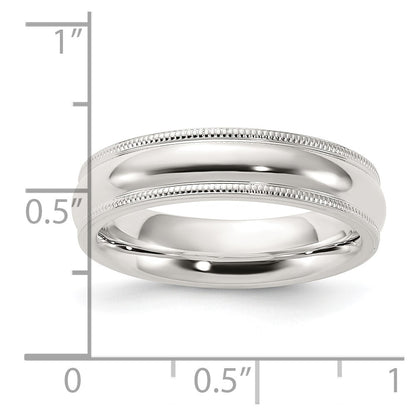 Sterling Silver 5mm Comfort Fit Half Round Milgrain Size 8 Band