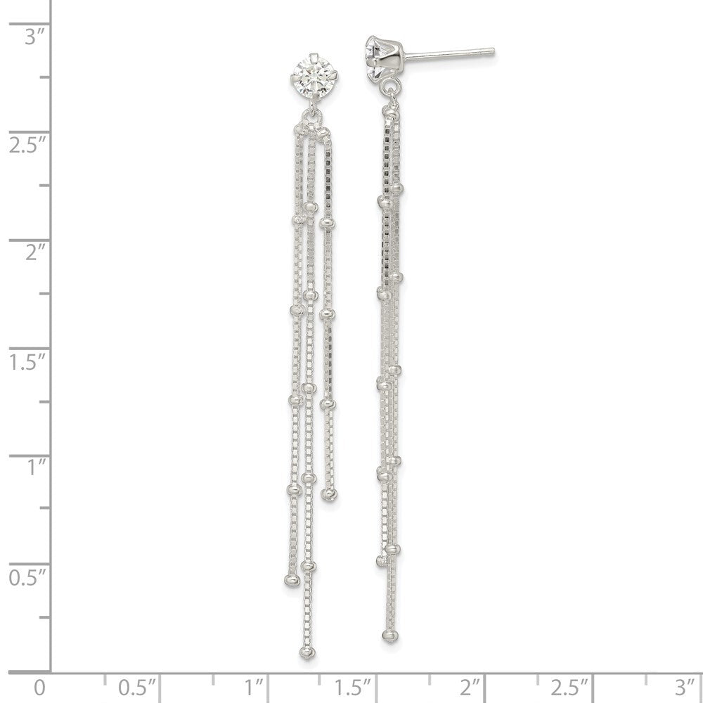 Sterling Silver Polished Cubic Zirconia & Beaded Chain Post Dangle Earrings