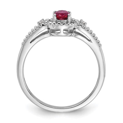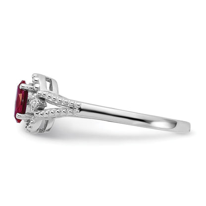 Sterling Silver Rhodium-plated Created Ruby & Diamond Ring